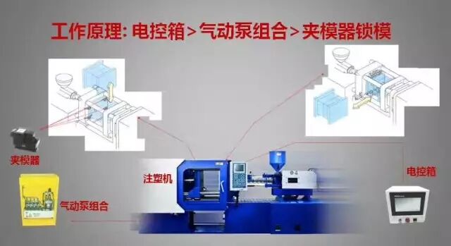 采用快模科技专用快速换模系统,一般注塑机换模操作仅需3分钟即可完成,特大型模具的换模时间从2小时以上缩短到10分钟!
